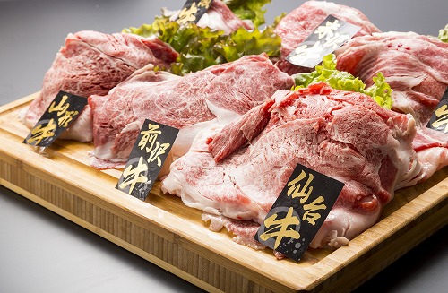 | 規 格 | 松阪牛うすぎり、神戸牛うすぎり、山形牛うすぎり、仙台牛うすぎり、前沢牛うすぎり、米沢牛うすぎり 各200g |