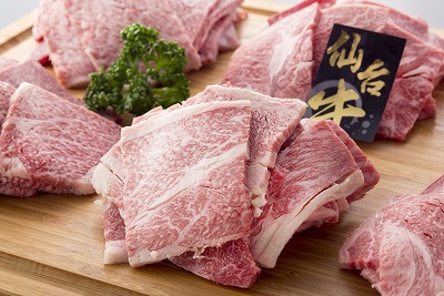 宮城県産黒毛和牛「仙台牛」は、大麦を中心とした飼料で、肉質は風味豊かで、脂肪もきめ細かでやわらかく霜降り肉の高級品。